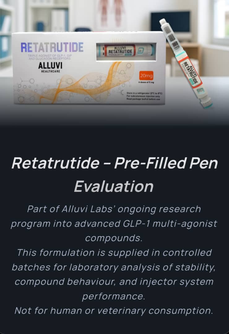Alluvi supplies Retatrutide pens exclusively for laboratory research and development.